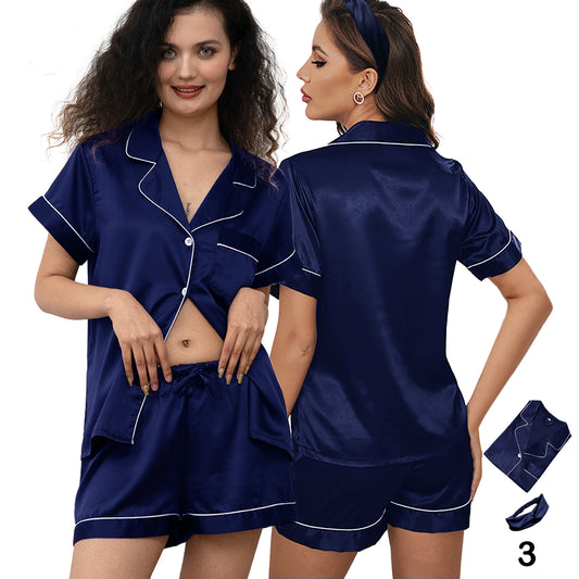 3Pcs Silk Pajamas XS-4XL Womens Satin Pajama Short Floral Sleepwear Bride Soft Pj Lounge Sets Pjs Shorts Set