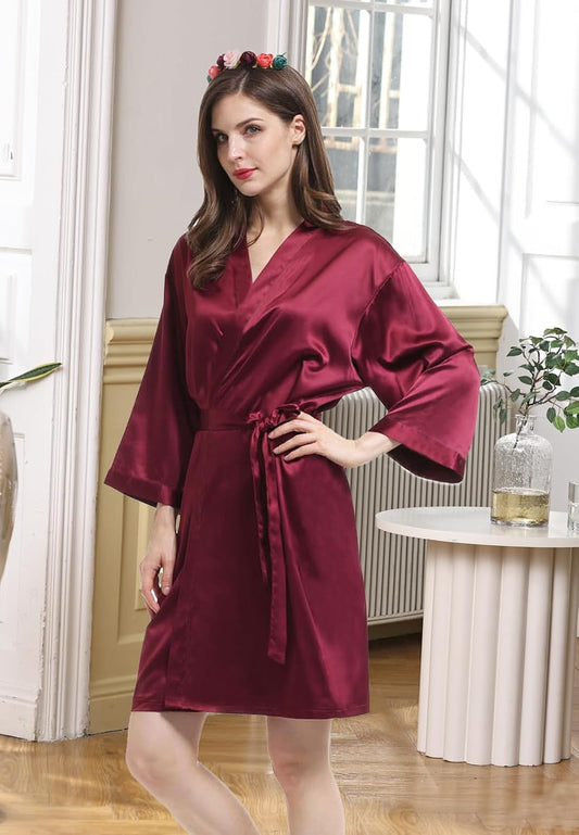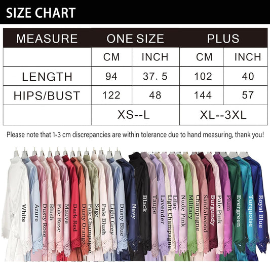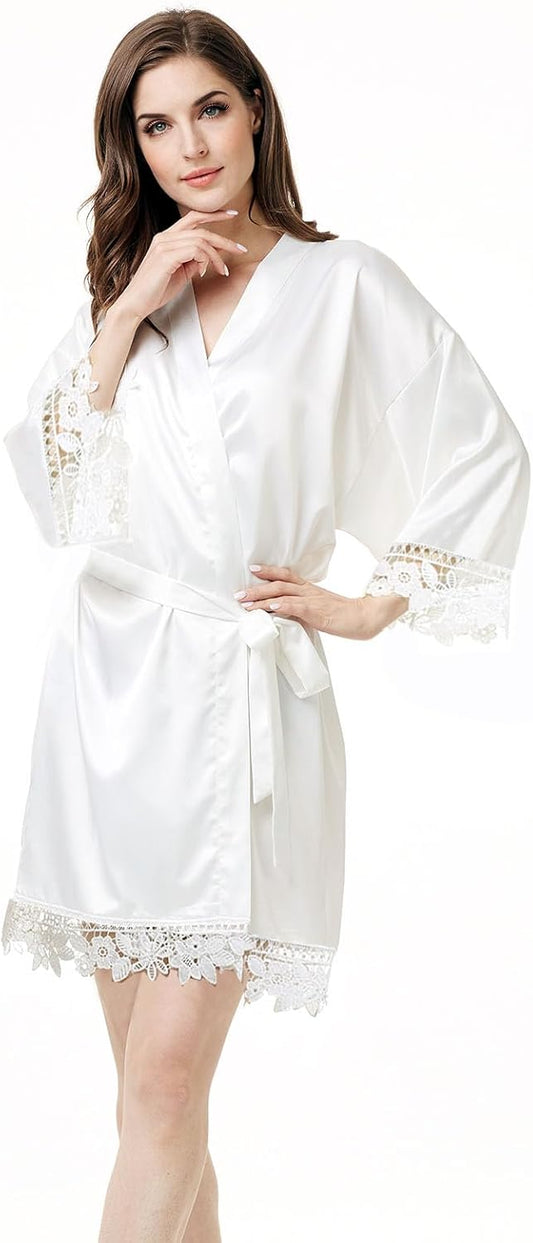 Womens Silk Robe Satin Robe Silky Kimono Lace Bathrobe Sleepwear Wedding For Bridal Bride Bridesmaid Robes